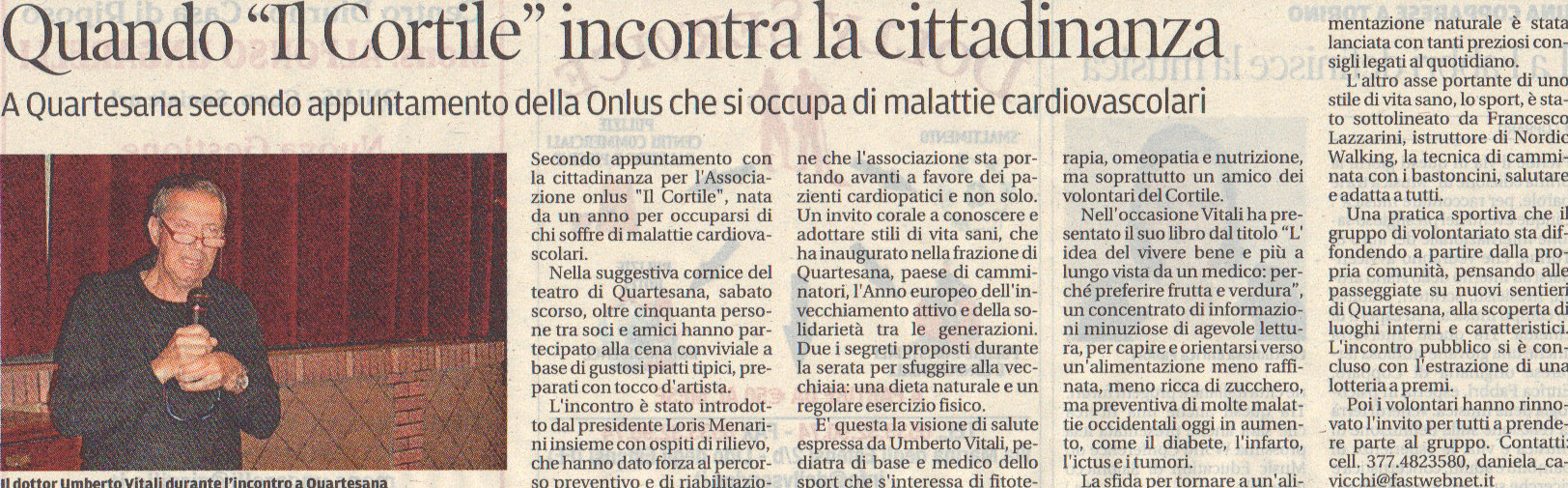 Articolo apparso su La Nuova Ferrara il 9/maggio 2012. Accenna alla sinergia tra associazione cardipatici Il Cortile e l'istruttore Francesco di Dimensione Nordic Walking.